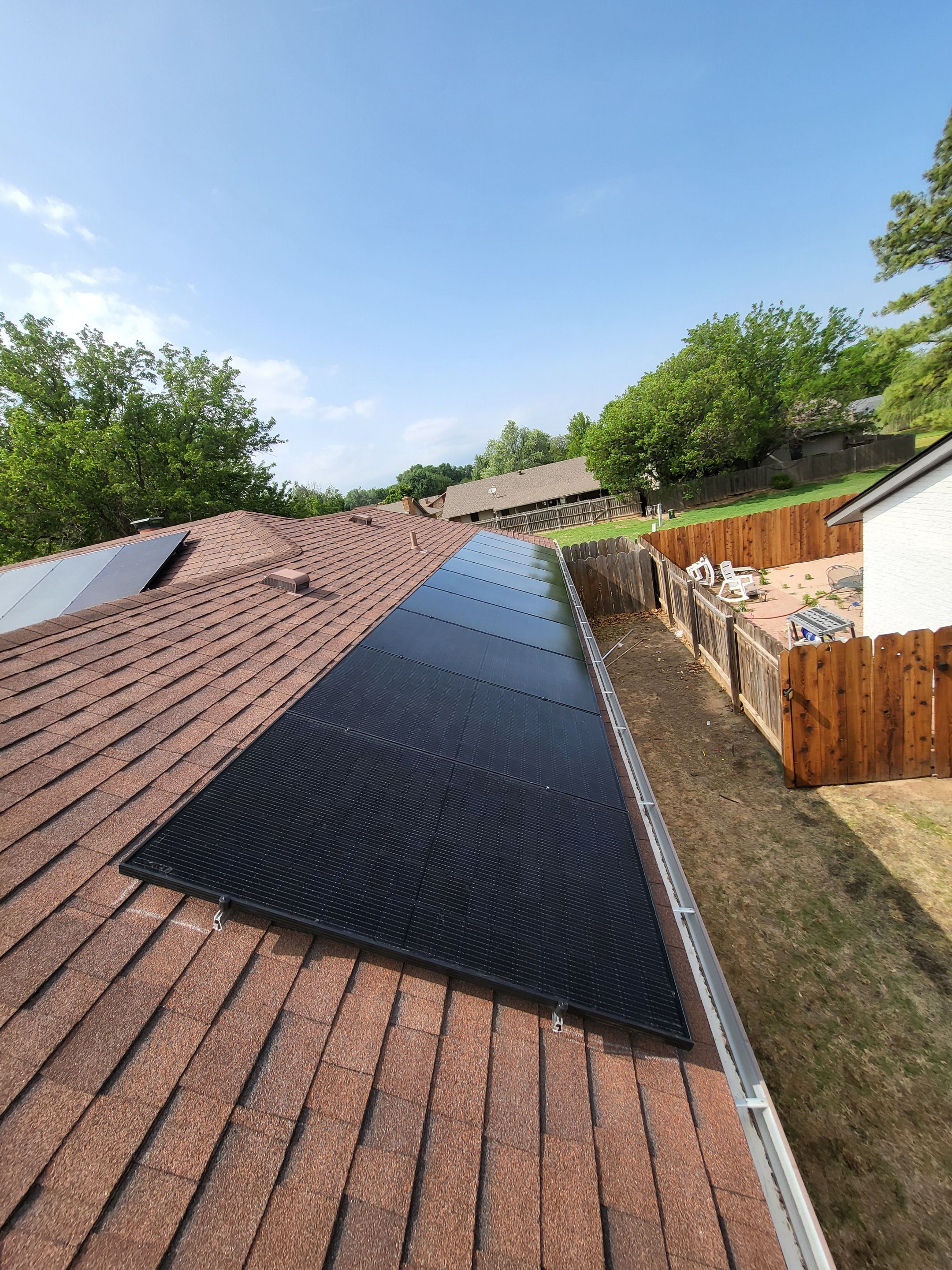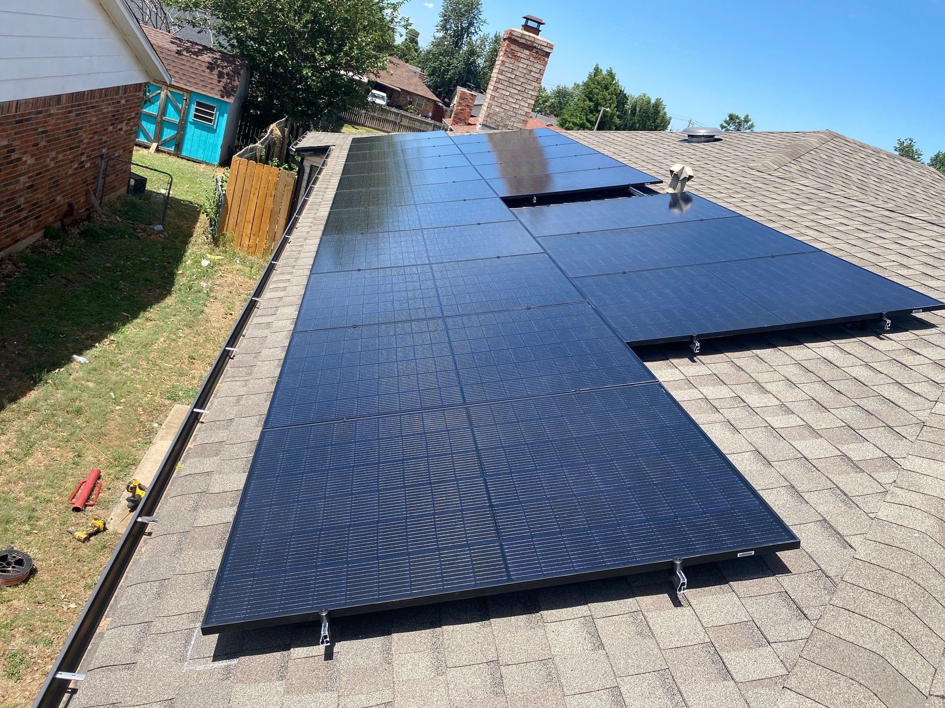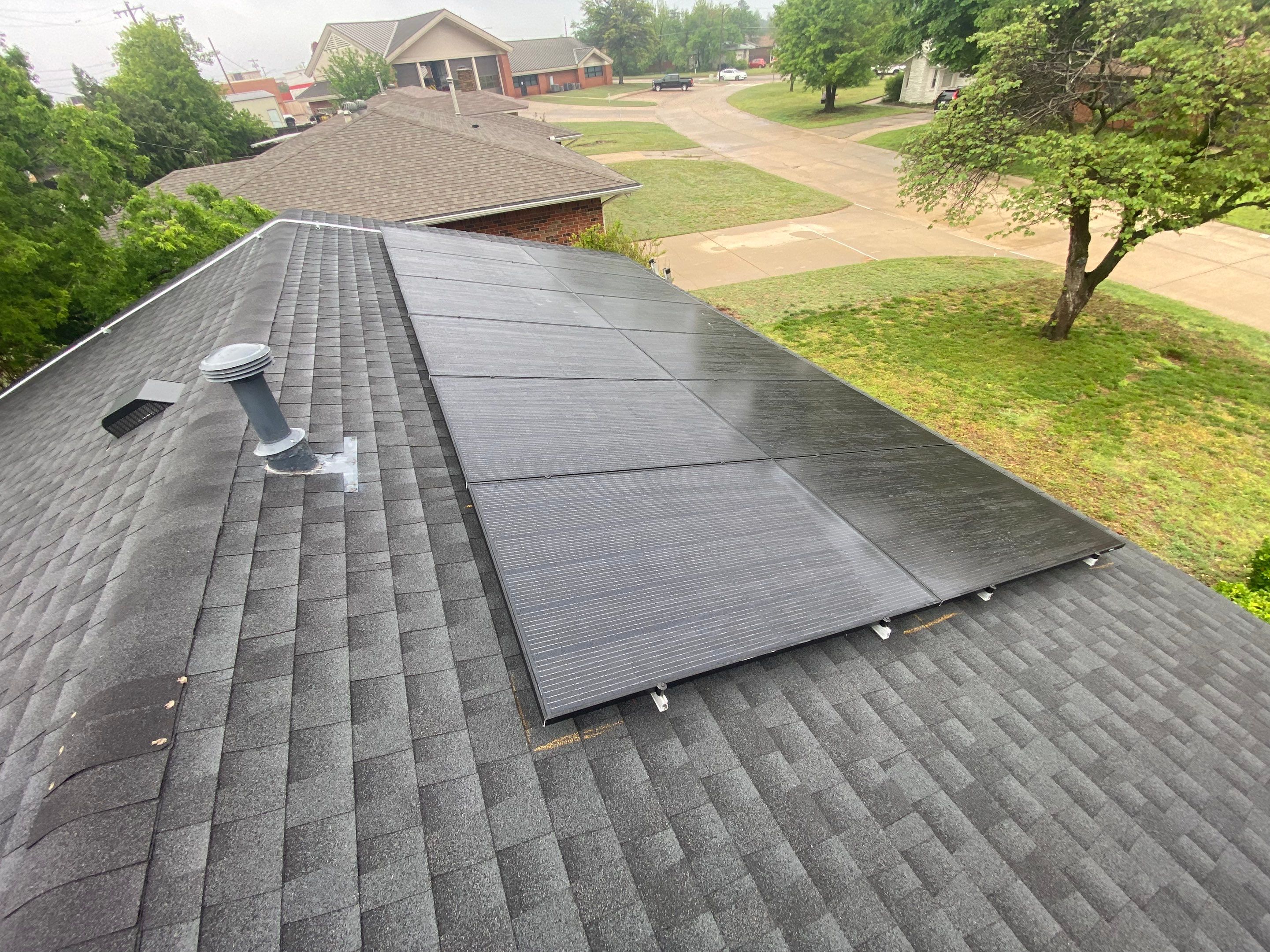 Okie Solar was amazing. They came to our home with an professional team of experts. They came in and assessed our roof and within a couple of days we had a plan and financial figures. They did request a down payment of half the total cost of the project to get on the schedule. And that is understandable considering the costs of materials associated with such projects. Their electrical team came out and removed our 16.3KW, 44 panel solar array. Unfortunately, we were battling weather and active leaking in our roof. It rained for days but Rick, Amna and Matt assured us they would get the job done as soon as weather permitted. A break in the weather came and their roofing crew got to work. It took roughly three days to complete demolition and removal of the old roofing material, and installation of the new TPO roof. This is a flat roof, and it required special considerations. Considerations the original solar installers neglected, causing serious damage to the mod-bit roof that was there before. Not more than a day later, Okie Solar's electrical team returned to install the array. During the process, two of our panels were damaged, Okie Solar replaced them at no cost to us. The installation took two days and we were back online, producing power. Amna came for final inspection and suggested that the solar crew return and tidy up a few visible wires. They cam the next day and did the work. The project was not cheap, but the final outcome is without price. We are so grateful to Rick and his team for making things right and fixing damage done by the botched installation of another company that has since gone out of business. Big thanks to Okie Solar for the work they did for us, making our home whole again. And thanks to our neighbors across the street for suggesting we contact you.
